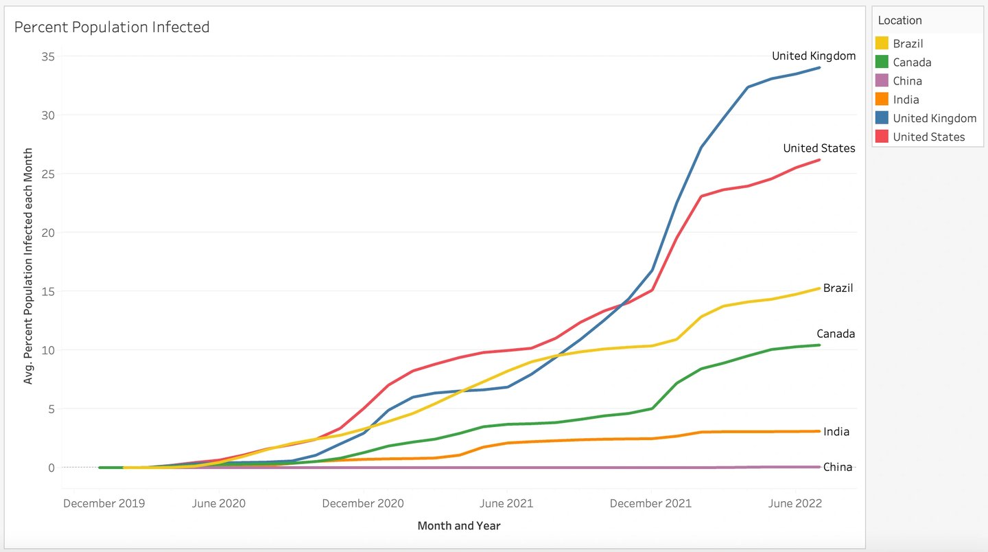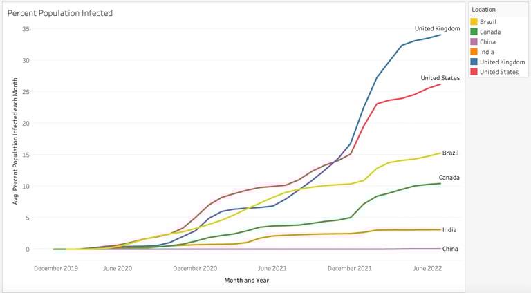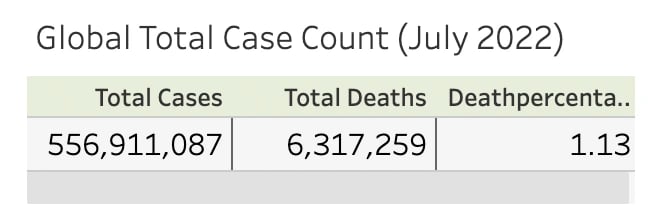 To complement that project, I built a quick dashboard in Tableau. The dashboard shows the following data, current to July 2022: